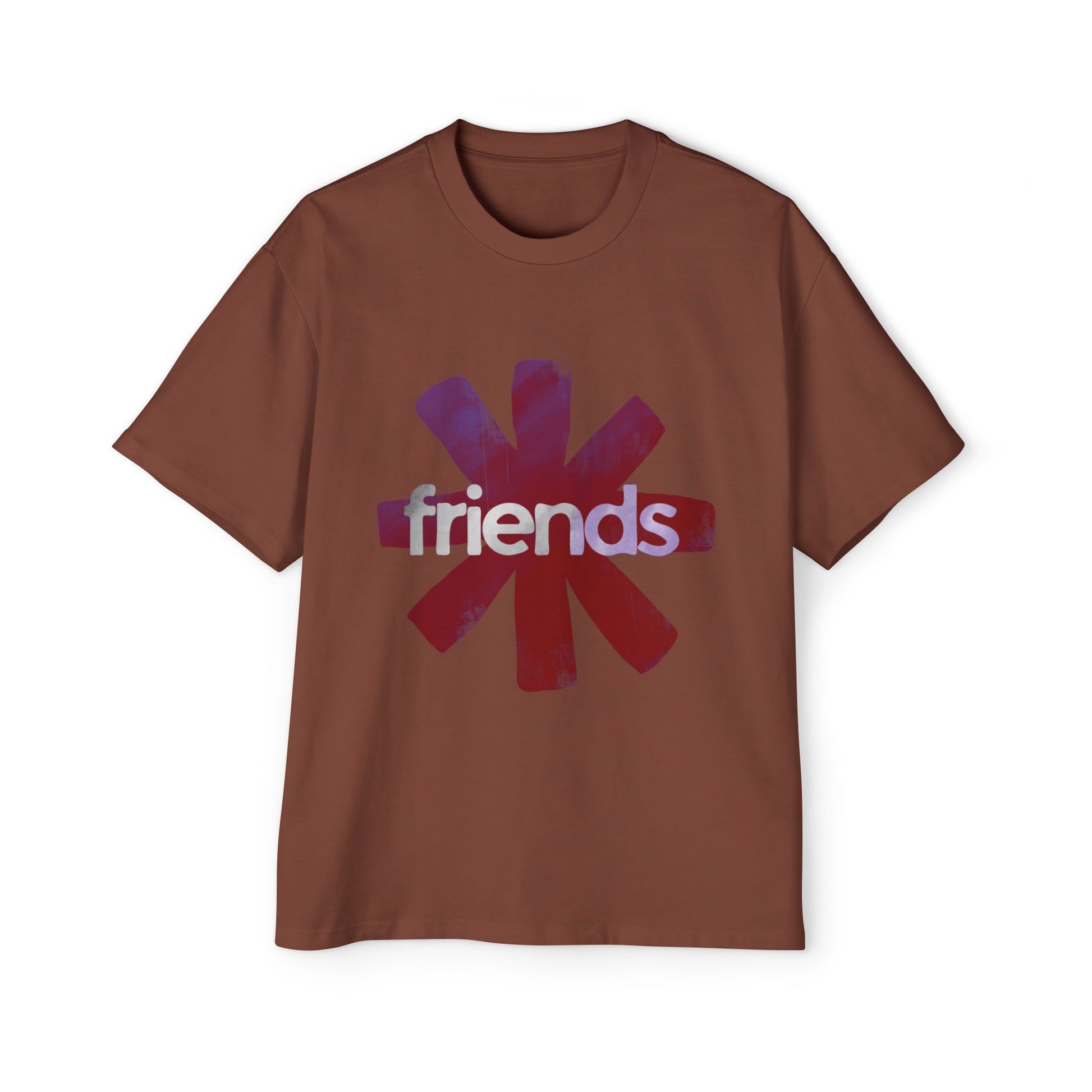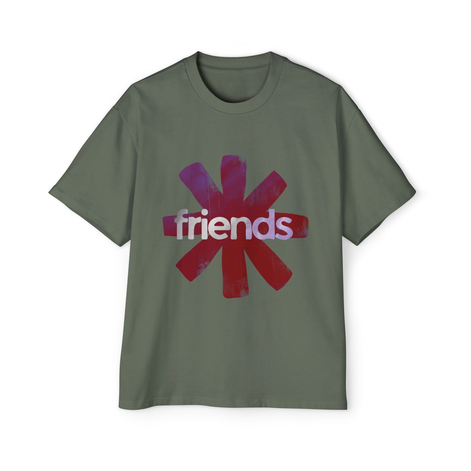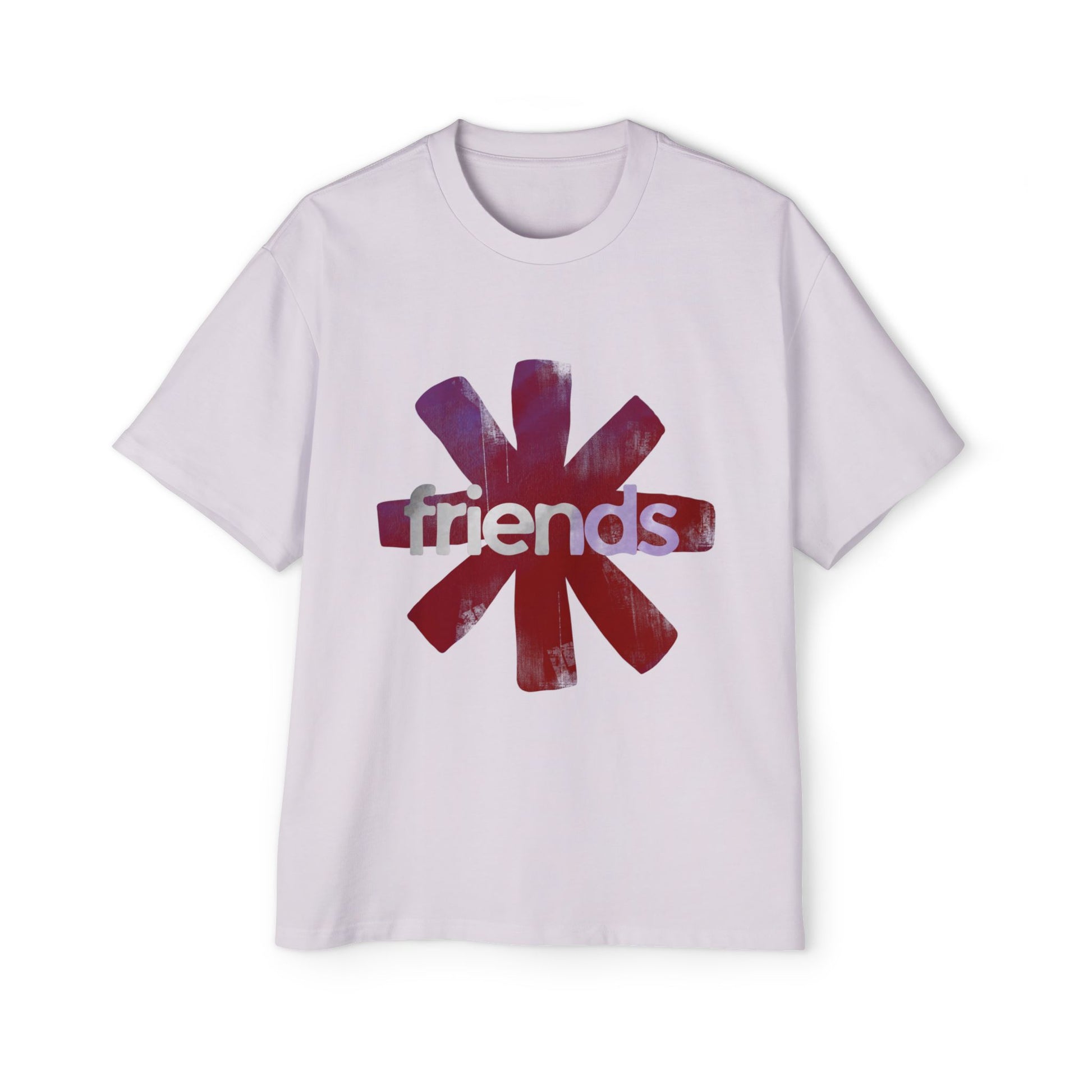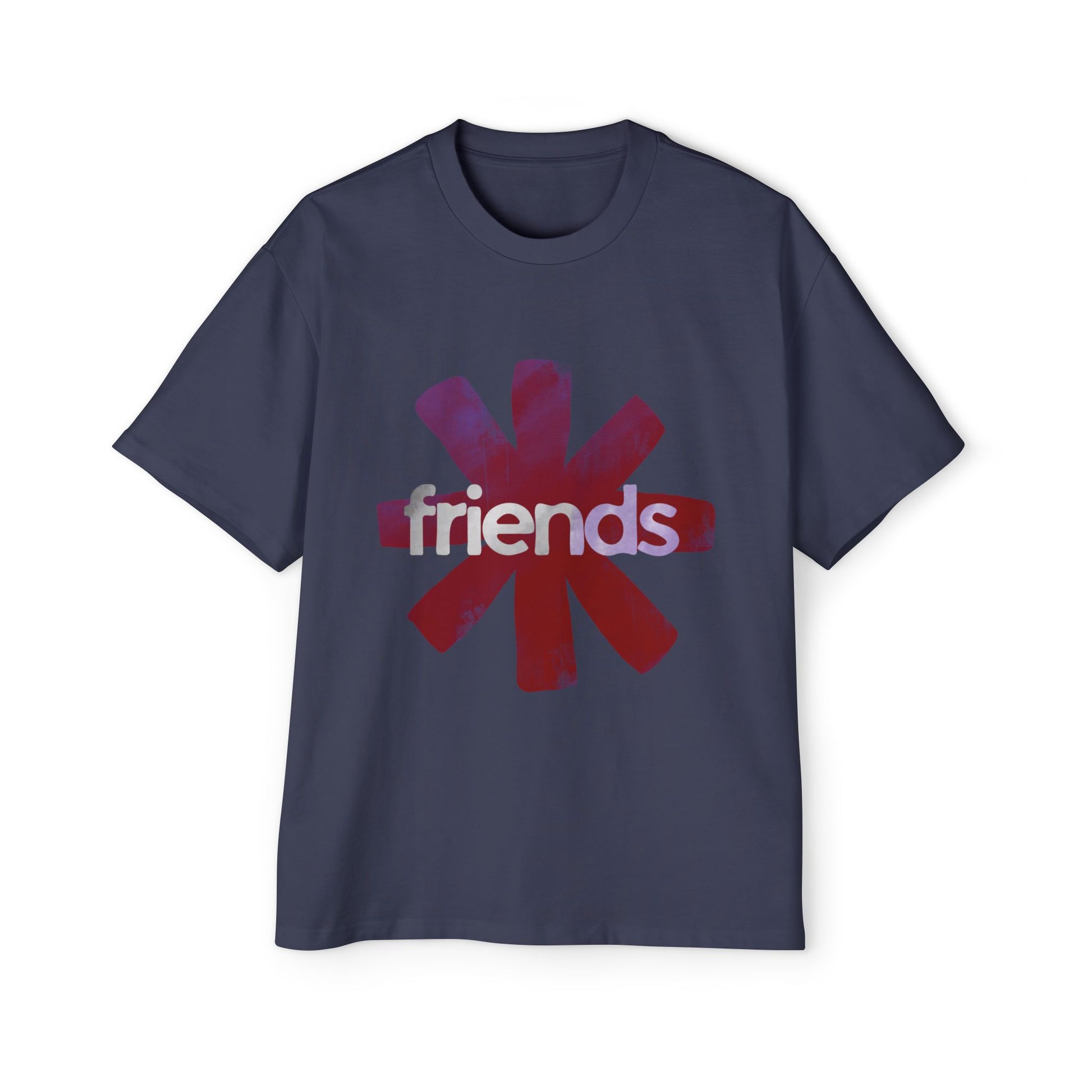 A roomy, lived-in tee that wears like a memory. The oversized silhouette drapes softly over the shoulders, letting the bold asterisk-style graphic and subtle back text speak without shouting. The front’s painterly starburst and the word “friends” carry a warm, nostalgic grit; the back’s small, honest line invites late-night playlists and slow conversations. Weighty cotton and reinforced seams mean it keeps its shape through washes and weekends. Wear it to lounge, to wander the city, or to kick back at a house show — it settles in and becomes part of your regular rotation.